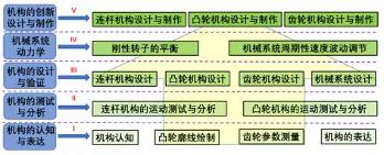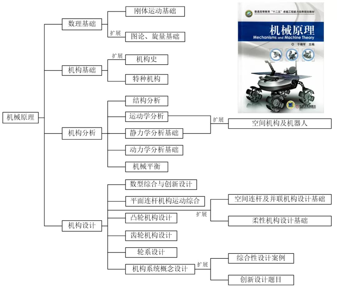 团队承担的“机械原理”课程是以机构的运动和动力设计为主要内容的一门技术基础课程。课程团队创建的研究型“教学原理”的结构框架(图9)。课程教学中注重基础理论知识教学的同时,加强了研究性内容的扩展。形成了适合研究型课程教学的新形态教材。