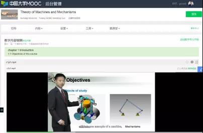 为了建设世界一流大学的需要,北航近些年不断加大国际交流的力度,为培养学生的国际视野和交流能力而努力。在此形势下,在总结多年针对留学生班的全英文授课经验的基础上,近五年还开展了针对中国学生的全英文的“机械原理”课程教学实践,由国外引进的青年学者担任授课教师,从授课的PPT、教师讲课,到作业、考试,全部采用英文进行,为课程与国际接轨进行了有益的探索,也受到了学生的普遍欢迎。目前在学校的“国际慕课”项目建设的支持下,“机械原理”英文版MOOC已经录制完成(如图19),即将开课。