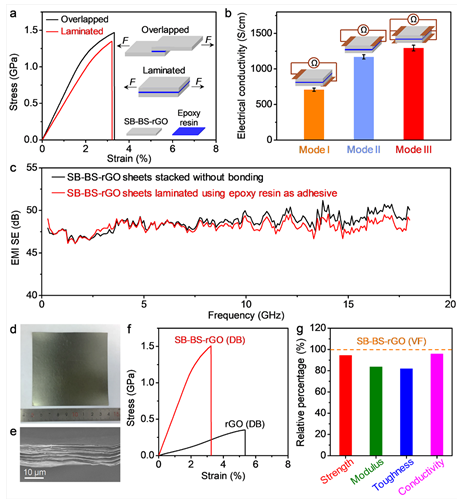 图3. rGO和SB-BS-rGO薄膜的力学和电学性能比较。