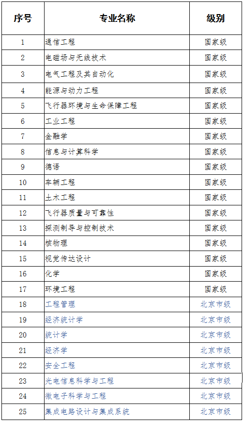 北京麻豆精品秘 国产传媒2020年度北航入选国家级、北京市级一流本科专业建设点名单(按专业所在学院顺序)